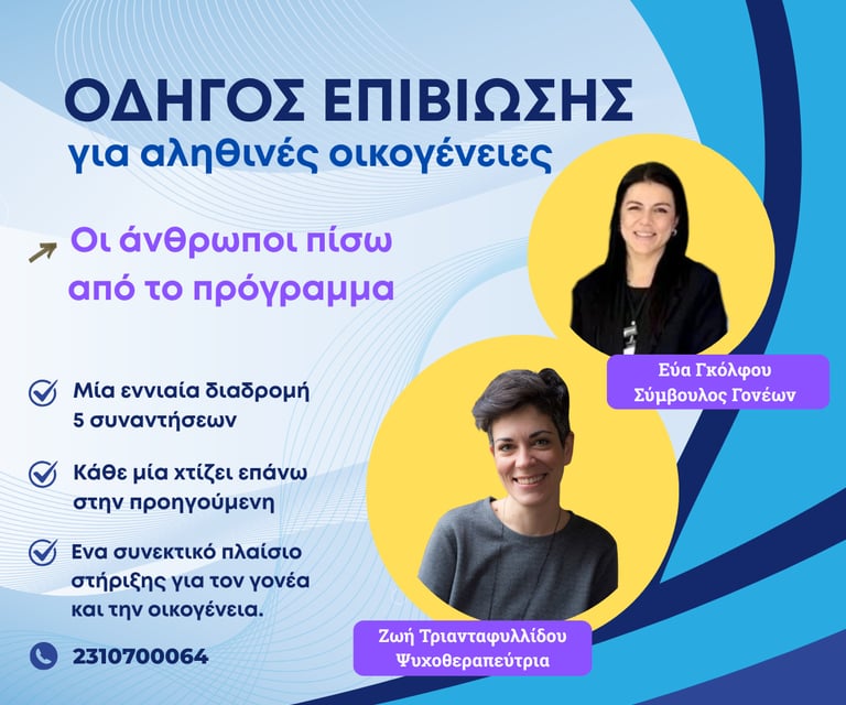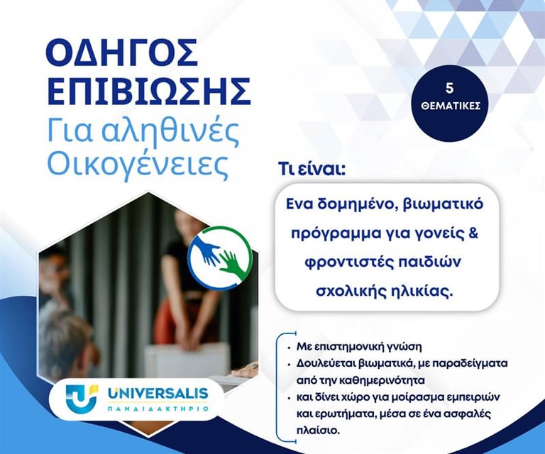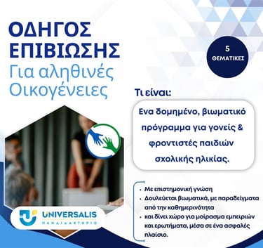 Ο Οδηγός Επιβίωσης για Αληθινές Οικογένειες είναι ένα δομημένο πρόγραμμα υποστήριξης που σχεδιάστηκε για να εμπλουτίσει τα εργαλεία και τις στρατηγικές που χρησιμοποιούν οι γονείς και οι φροντιστές παιδιών σχολικής ηλικίας.
